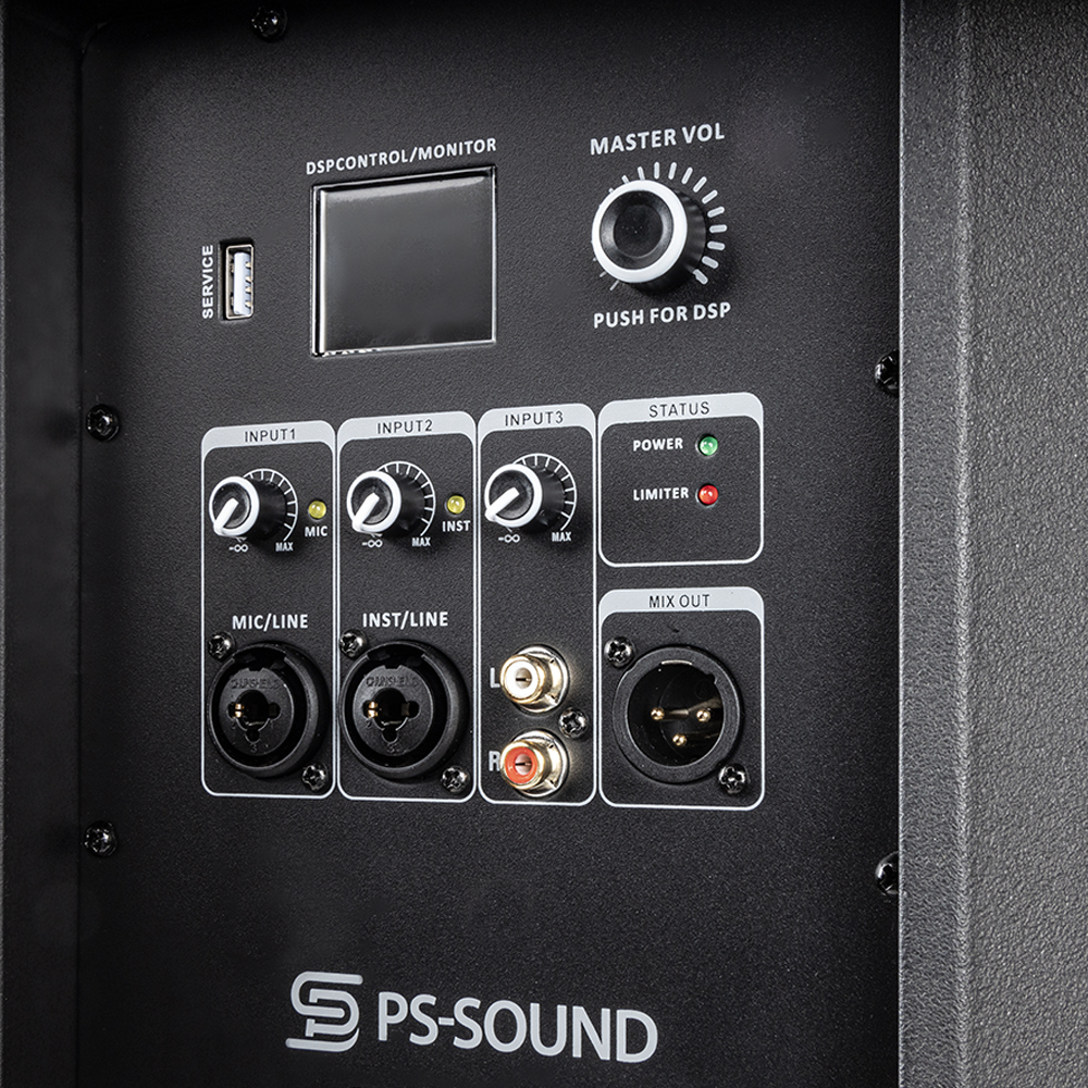 PS-SOUND PAS-8908DSP, 8" активная акустическая система, 350/700Вт, 65Гц-20кГц, DSP, BT, пластик