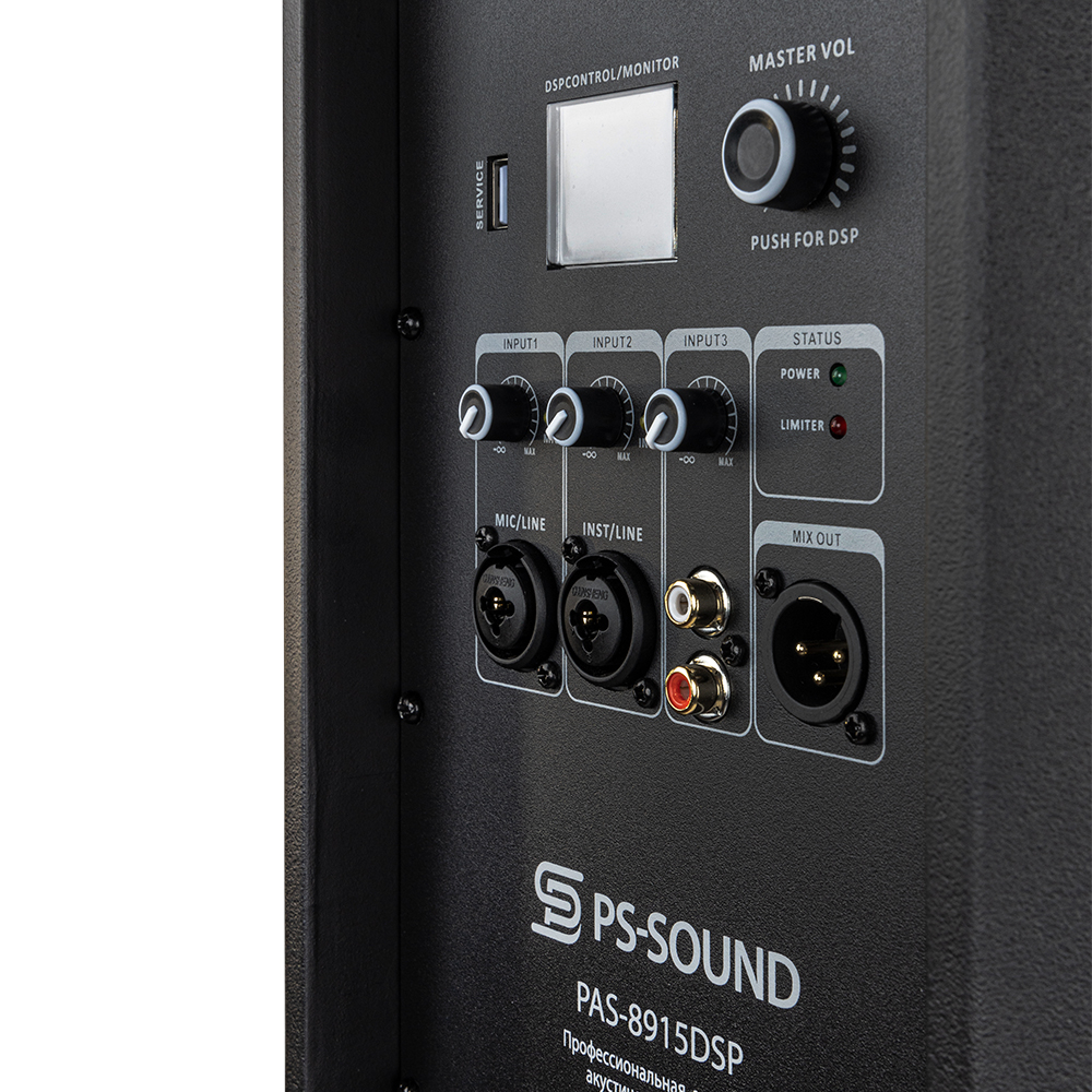 PS-SOUND PAS-8915DSP, 15" активная акустическая система, 400/800Вт, 45Гц-20кГц, DSP, BT, пластик