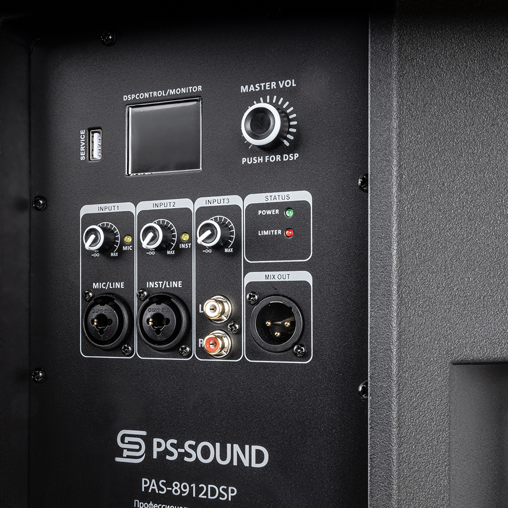 PS-SOUND PAS-8912DSP, 12" активная акустическая система, 400/800Вт, 48Гц-20кГц, DSP, BT, пластик